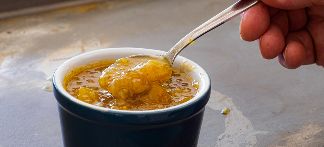 - To test the chutney is cooked to the right consistency, spoon a little of the mixture on to a plate. The chutney should hold its shape.