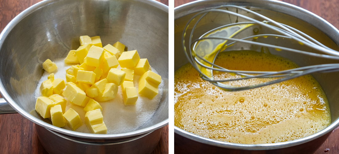 Place the whole eggs and egg yolks in a separate bowl and gently whisk until they are thoroughly combined. No egg white should be visible in the mixture. Do not overbeat the eggs.