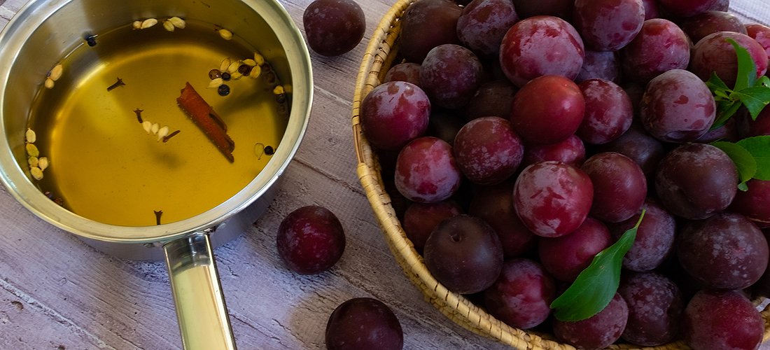 - Cook the plums very gently so they are not overcooked. They will continue to cook through in the hot spice vinegar.