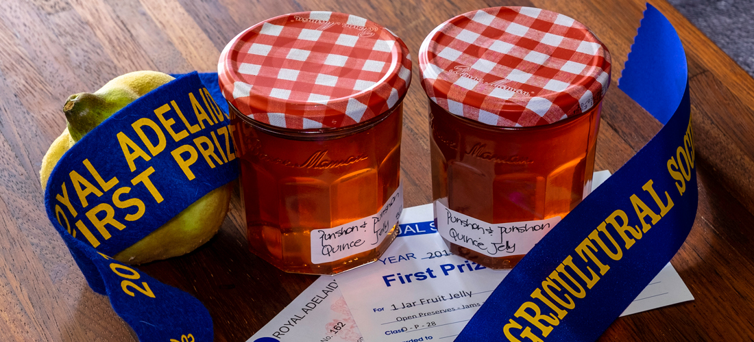 Quince jelly sparkles and shines like a rare jewel that has captured the heart, soul and fragrance of quince. Transform breakfast into a special occasion by spreading on thick slices of sourdough toast or homemade crumpets, or treat yourself by spooning over vanilla bean ice cream. Making jelly requires a little more care and patience than jam making but its worth the extra effort. Long slow cooking will bring out the intense ruby colour and carefully strained juice will produce a jelly with such intensity and clarity it will delight the eye of the beholder. I have won a string of awards at Agricultural Shows with this recipe. For a special culinary gift, simply wrap with some colourful ribbon and love.