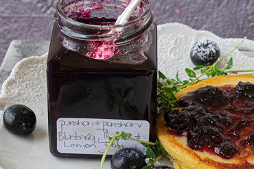 Blueberry jam, scented with fresh aromatic lemon and thyme, is a majestic preserve that deserves to be savoured and shared...