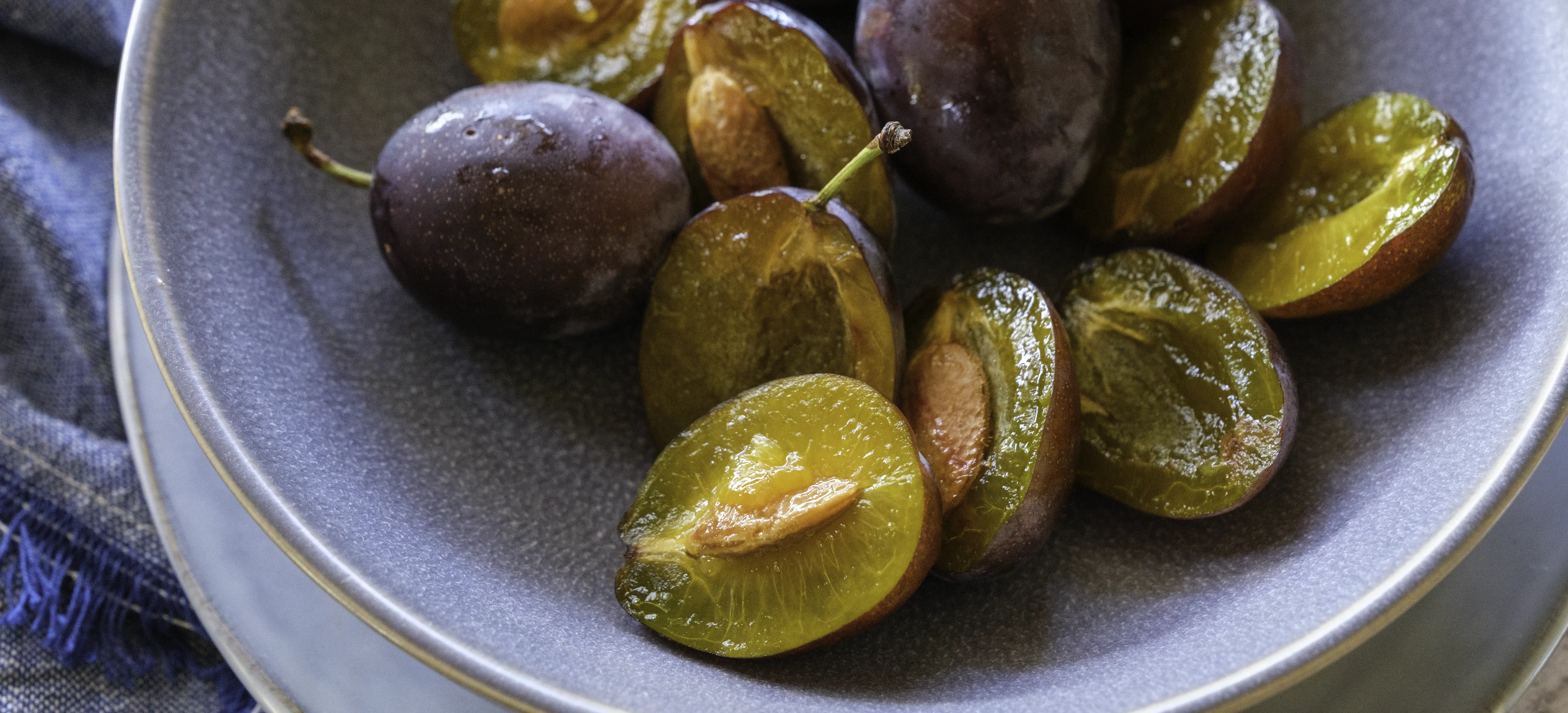 - Dark plums, ripe, firm