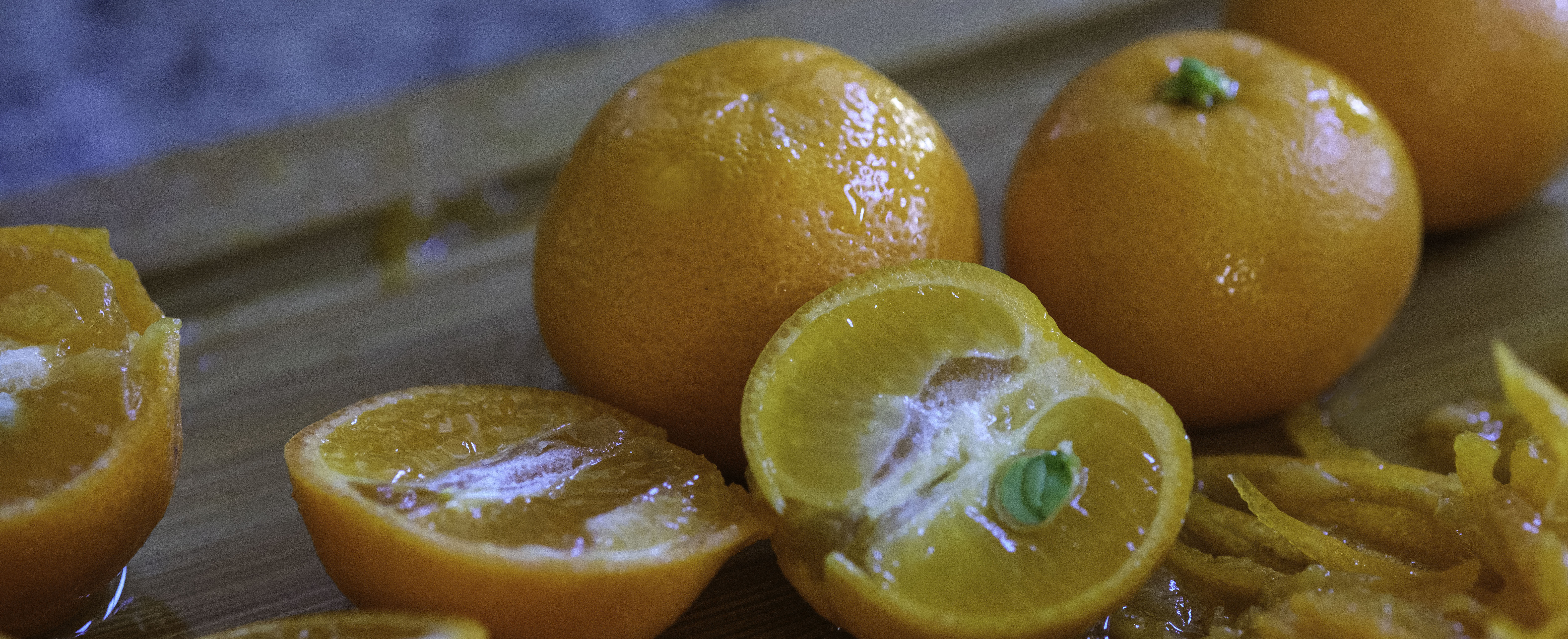 Kumquats are revered by marmalade aficionados, particularly the Nagami Oval variety. Its deep orange colour, aromatic flesh and sweet tangy rind makes a superlative preserve.  Though kumquats take more time to prepare than the traditional citrus fruit varieties, the result is definitely worth it. Kumquat marmalade is the perfect breakfast spread and is a wonderful accompaniment to nutty cheese, chocolate, served with ice-cream, yogurt or cream and as a side for rich cakes and desserts that need some tang to offset their full luxurious flavour.   Don’t be confused if you see it spelt cumquat – it’s the same fruit.